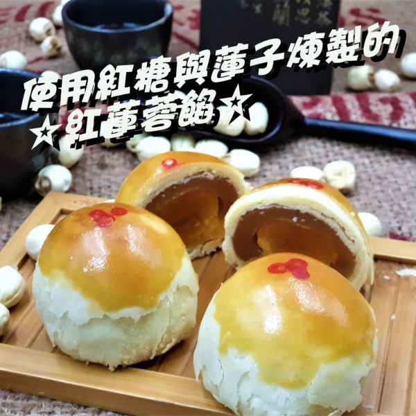 嚴選的特級蓮子,加上紅糖與白鳳豆慢火燉煮熬製而成紅蓮蓉餡,交織出特別的好味道